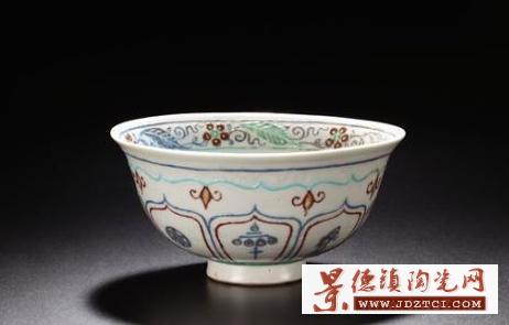 《卵白釉暗刻五彩戧金碗》 元 尺寸:直徑17cm 成交價:74,750,000RMB