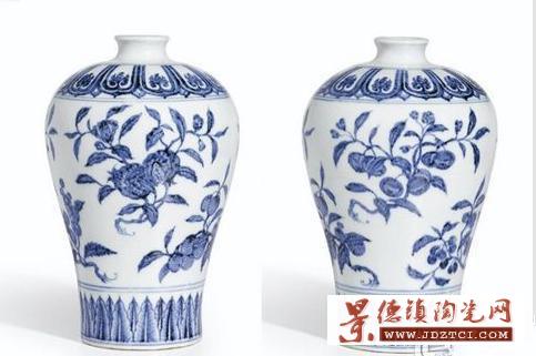 《青花折枝瑞果紋梅瓶》 明永樂年間 尺寸:28cm 成交價:48,280,000 HKD;38,141,200RMB