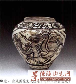 看珍珠地:珍珠地是磁州窯特有的一種裝飾方法,古瓷上這種紋飾表面平滑,色朱紅或暗紅或黑褐色。今刻劃表面凹凸不平,手繪珠地大小不一,呈色為胎的原色或填充黑彩、褐紅彩于劃痕內(nèi)。